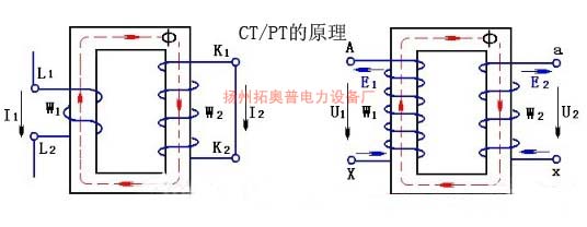 電壓互感器的原理與變壓器相似,如圖所示。一次繞組(高壓繞組)和二次繞組(低壓繞組)繞在同一個鐵芯上,鐵芯中的磁通為Ф,是用來變換線路上的電壓的設(shè)備。主要是用來給測量儀表和繼電保護裝置供電,用來測量線路的電壓、功率和電能,或者用來在線路發(fā)生故障時保護線路中的貴重設(shè)備、電機和變壓器,因此電壓互感器的容量很小,一般都只有幾伏安、幾十伏安,大的也不超過一千伏安。